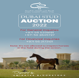 We want to bring to your attention the "DUBAI STUD AUCTION", Organized by Emirates Bloodstock will take place at "Dubai Arabian Horse Stud" on 29/10/2022 at 03-00 pm. The auction will consist of on...
