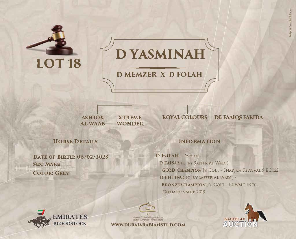 Notes:INFOAL TO TAHAN GHALEB (C, BY FA EL RASHEEM). DUE TO FOAL ON 07 FEB 2024.