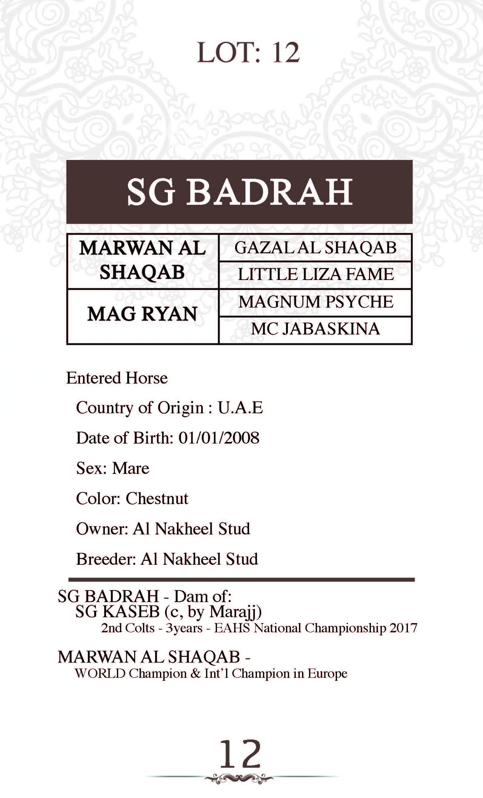 Dam's sire: MARWAN AL SHAQAB