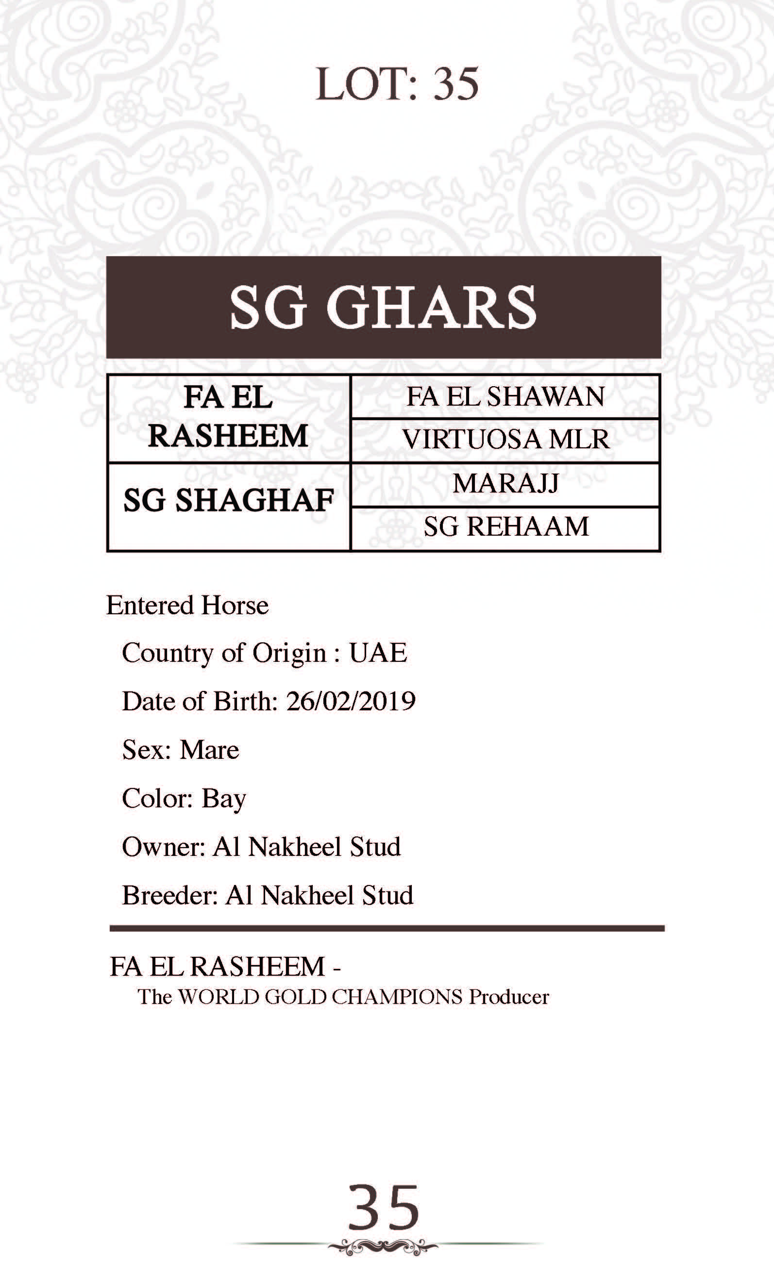 Sire: FA EL RASHEEM