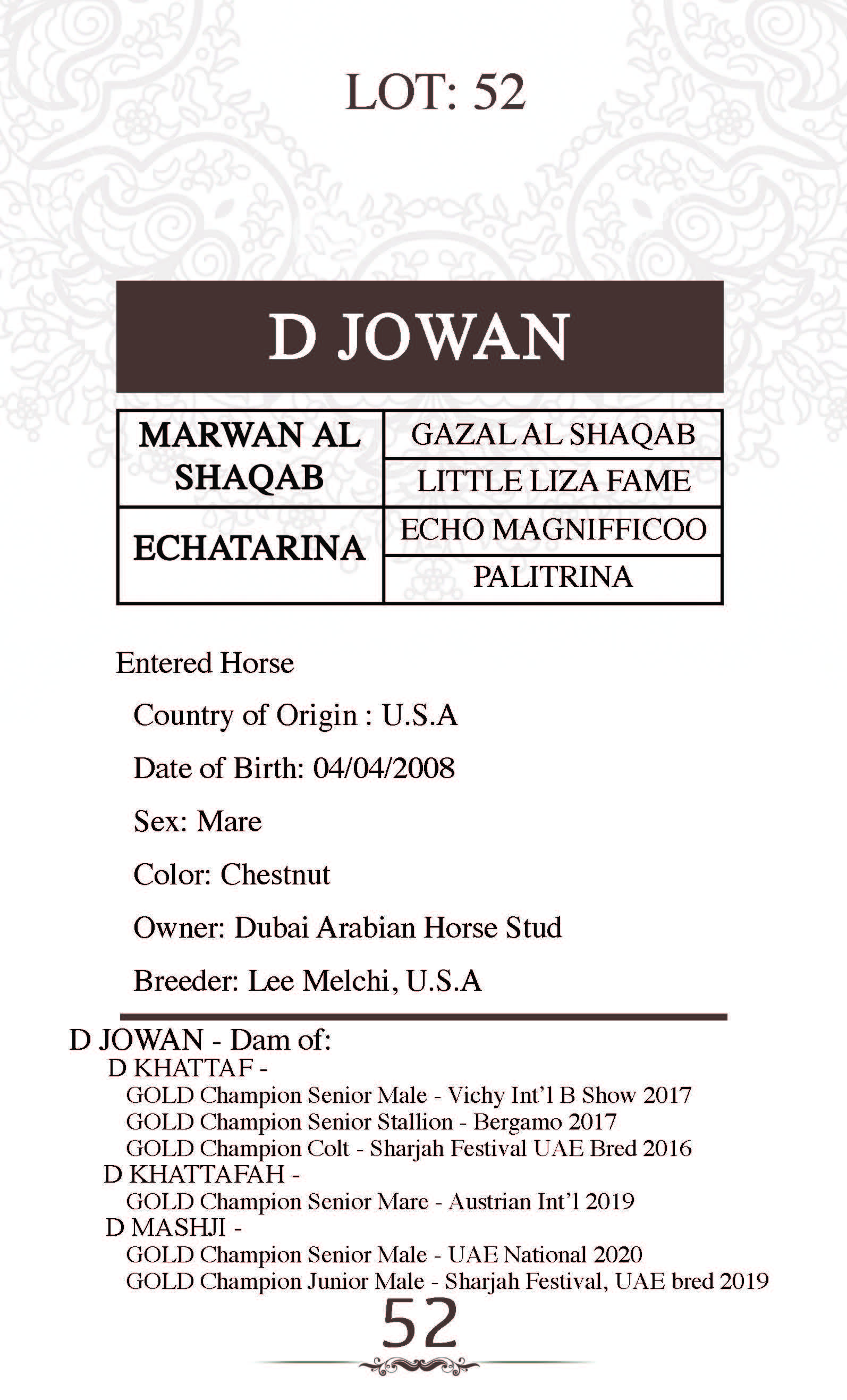 Sire: DF AL MAJEED