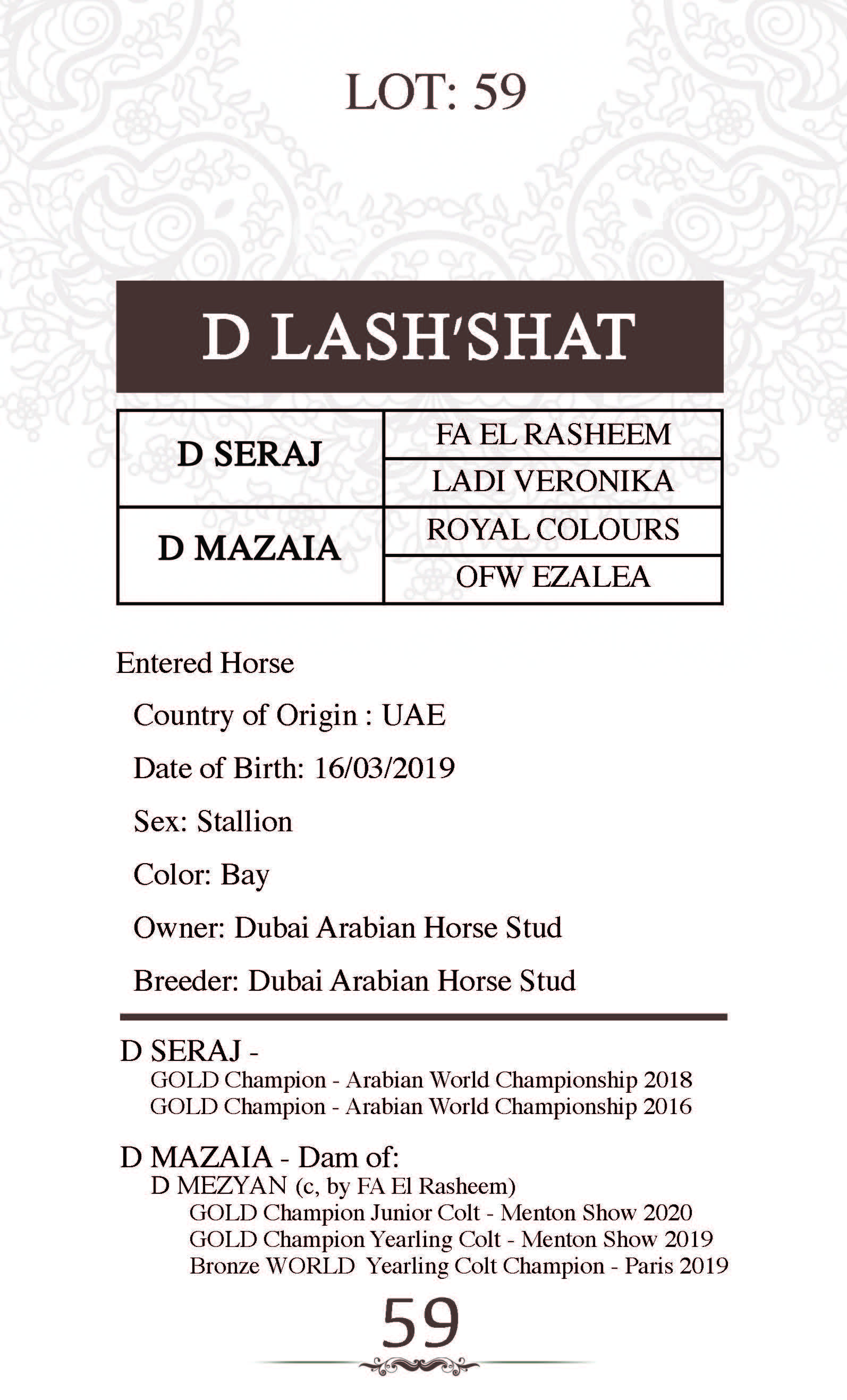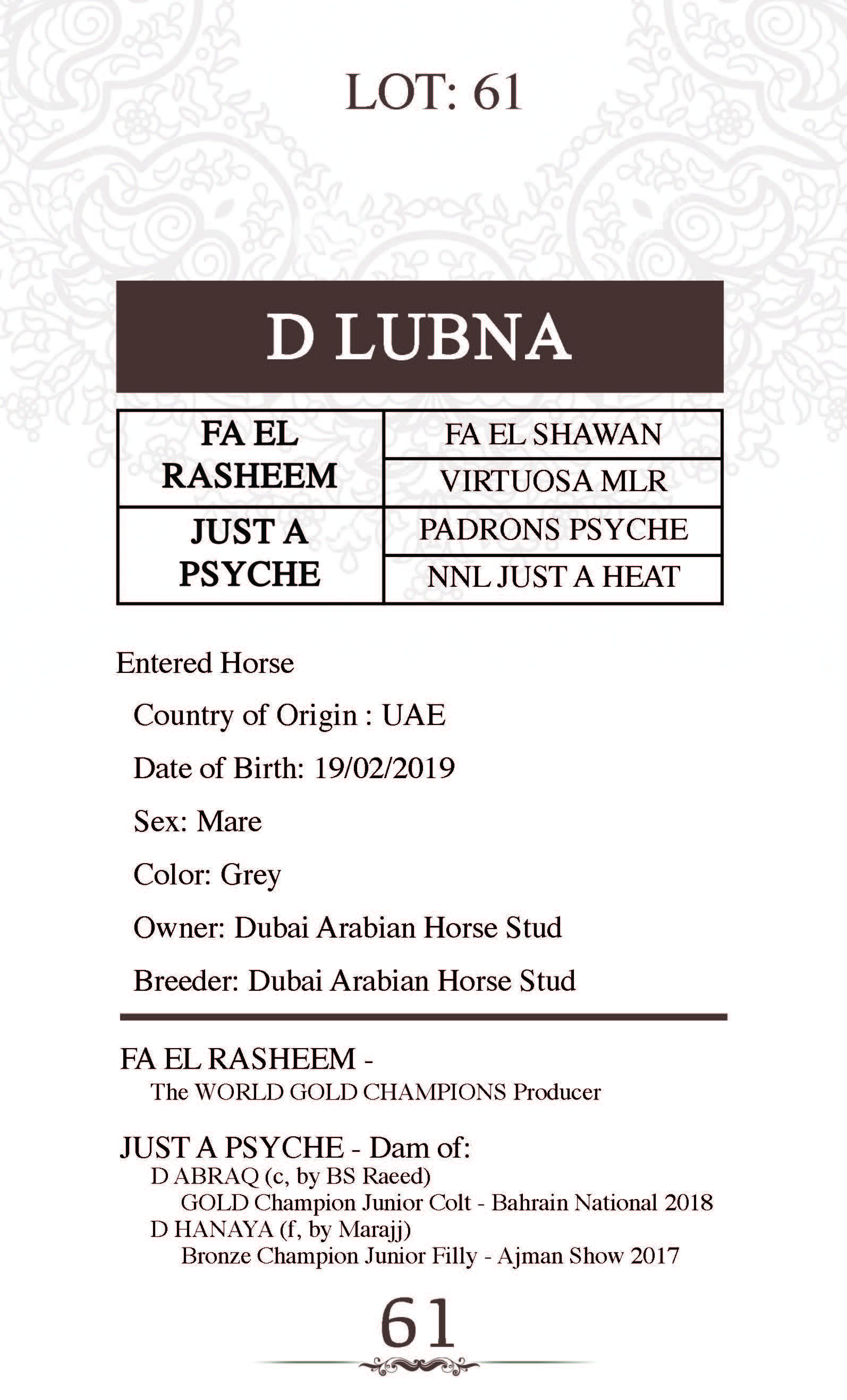 Sire: FA EL RASHEEM