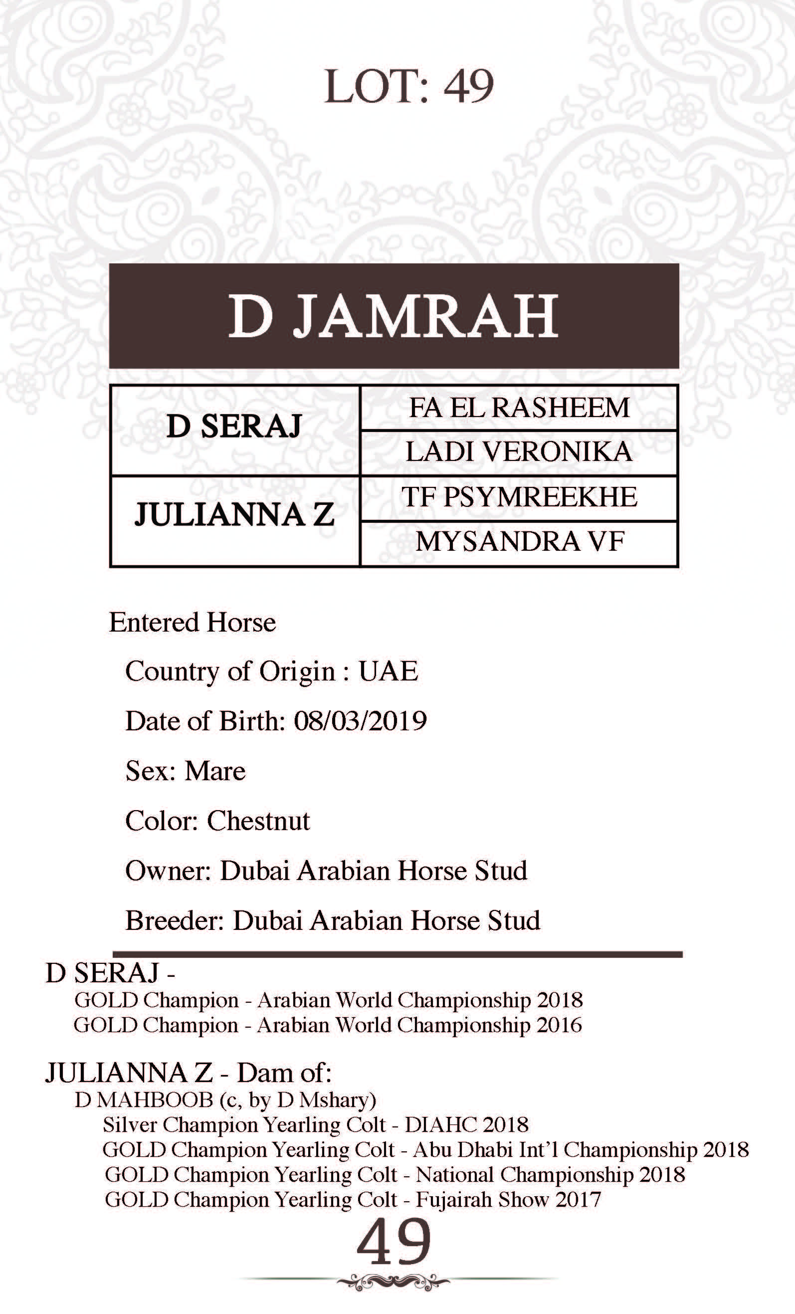 Sire: D SERAJ