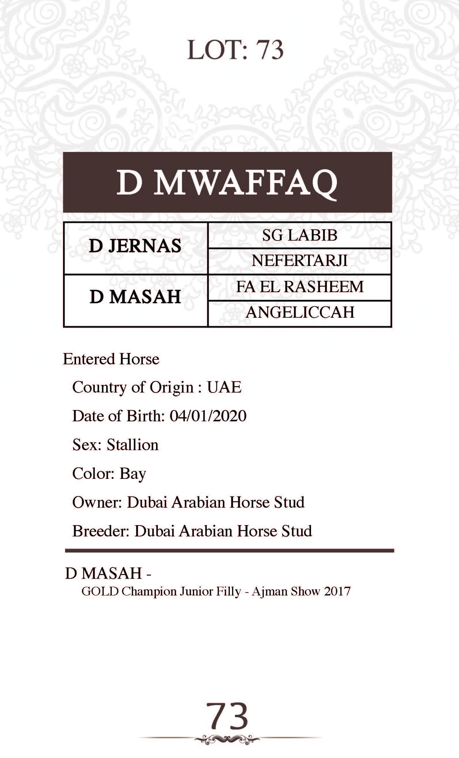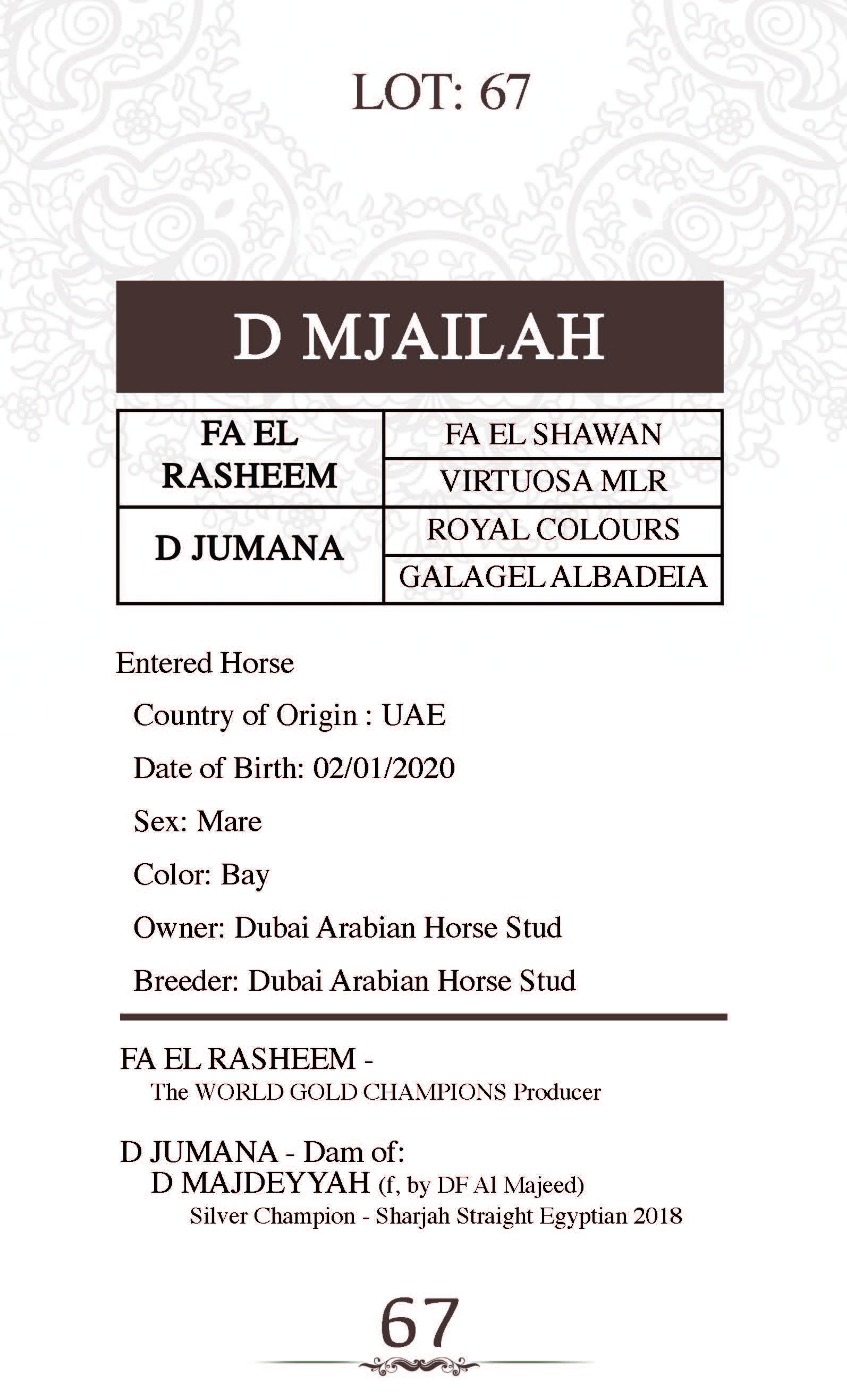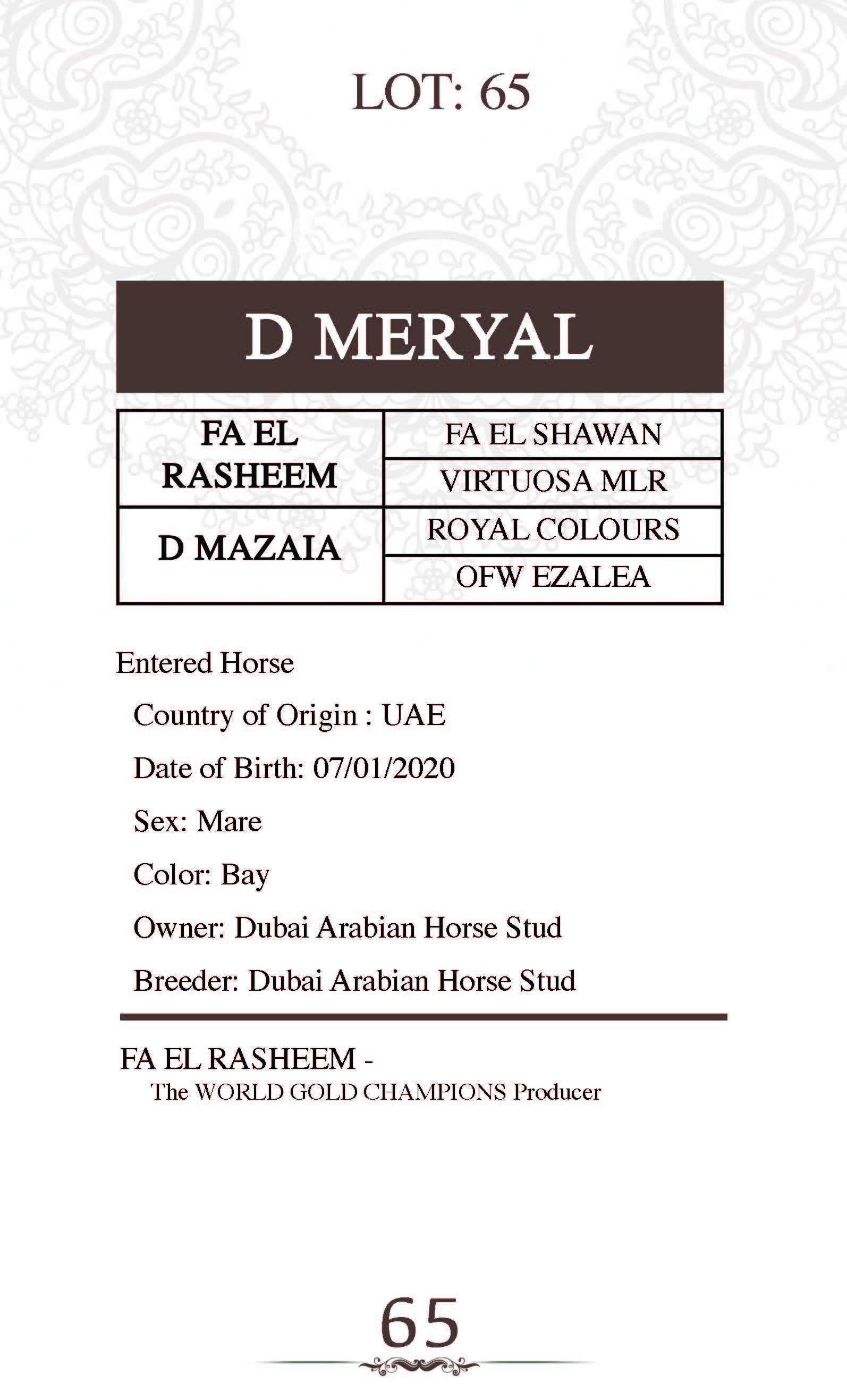 Sire: FA EL RASHEEM