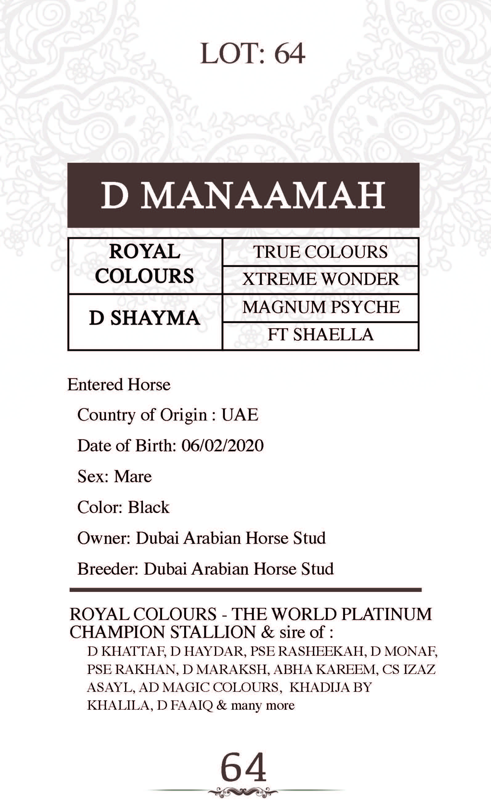 Dam's sire: SHAEL DREAM DESERT