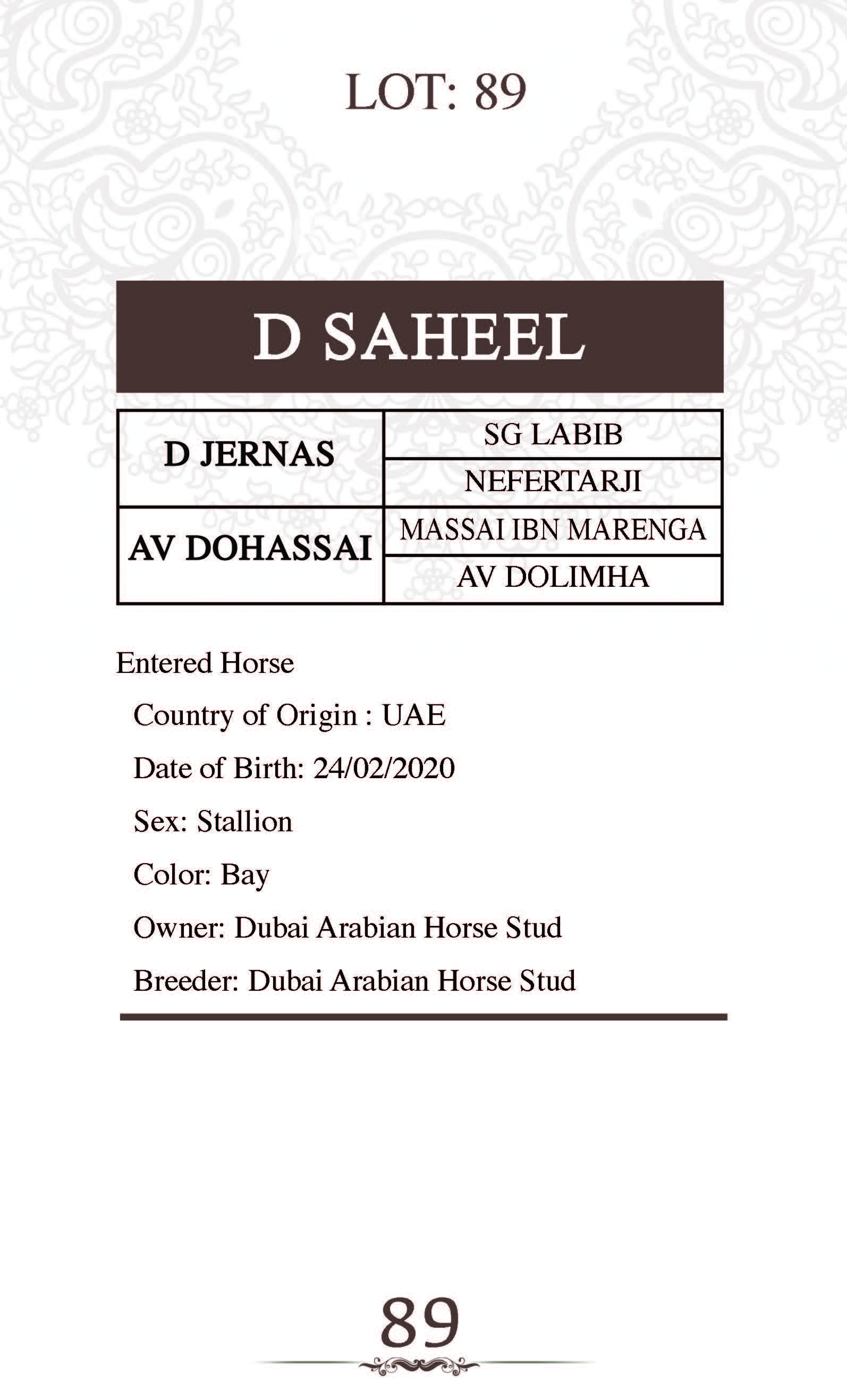 Dam's sire: KAHIL AL SHAQAB