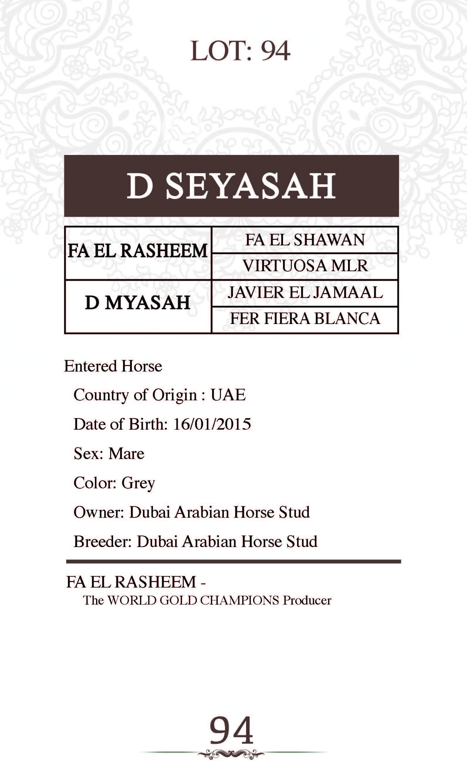 Sire: FA EL RASHEEM