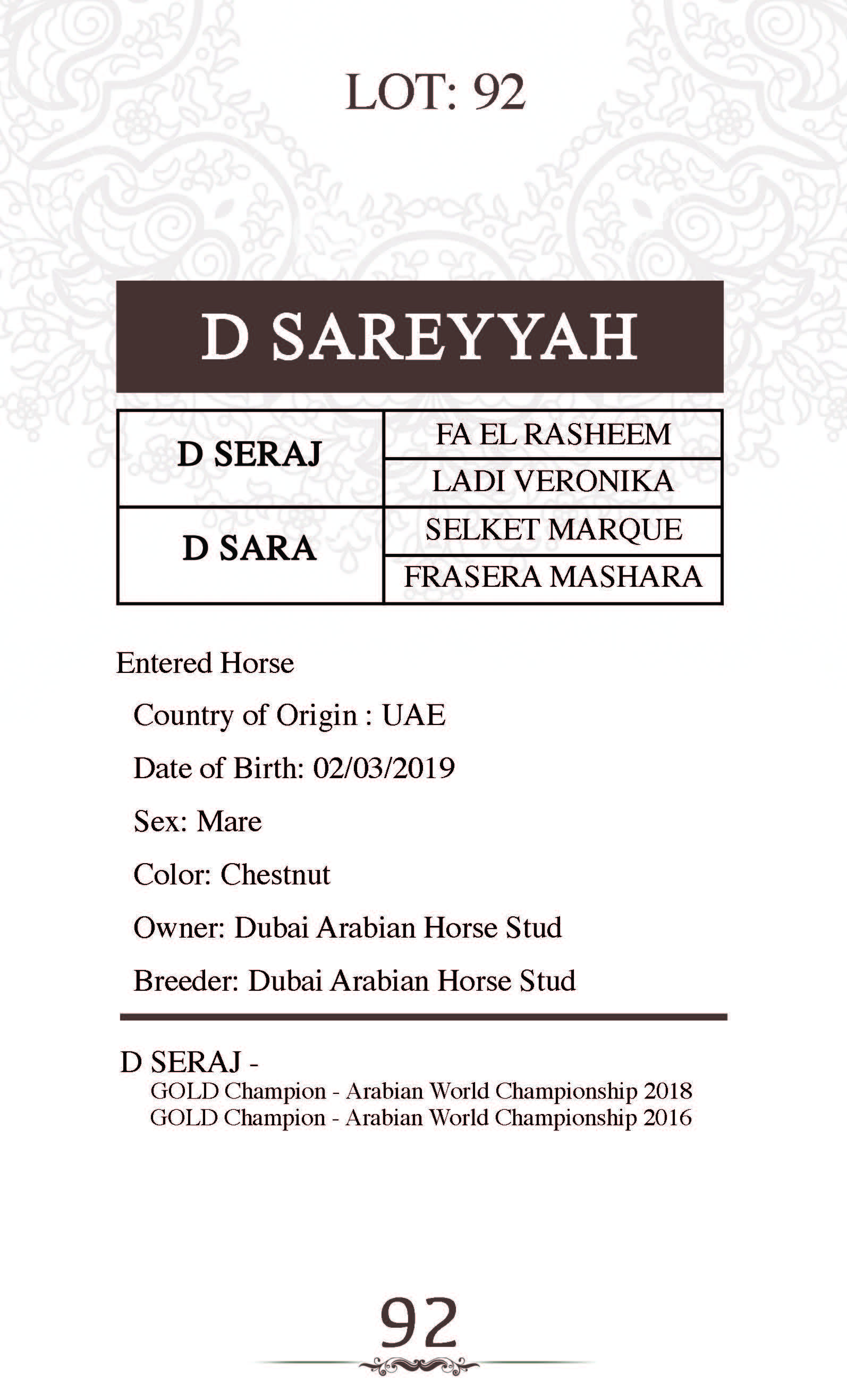 Sire: D SERAJ