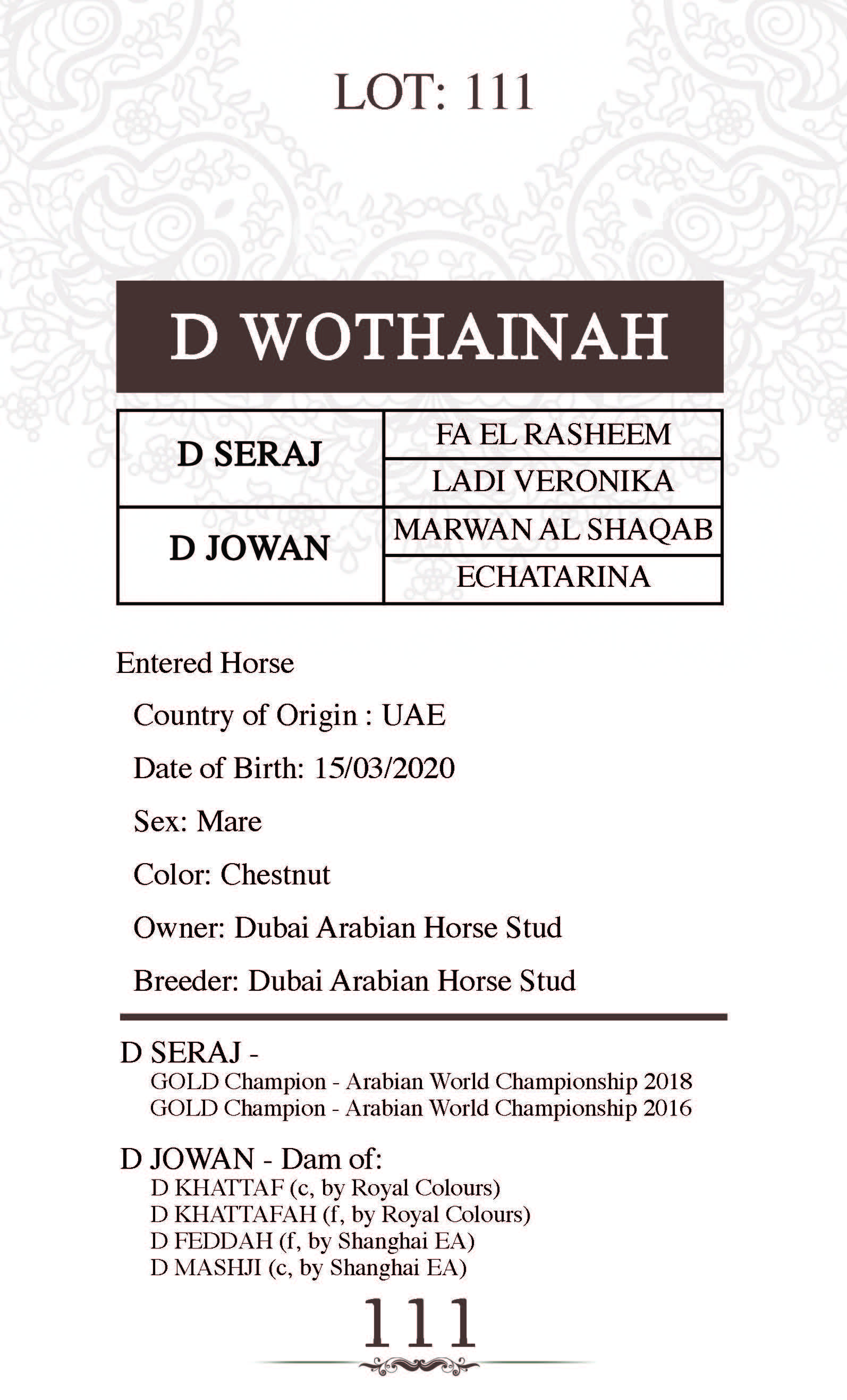 Sire: D SERAJ