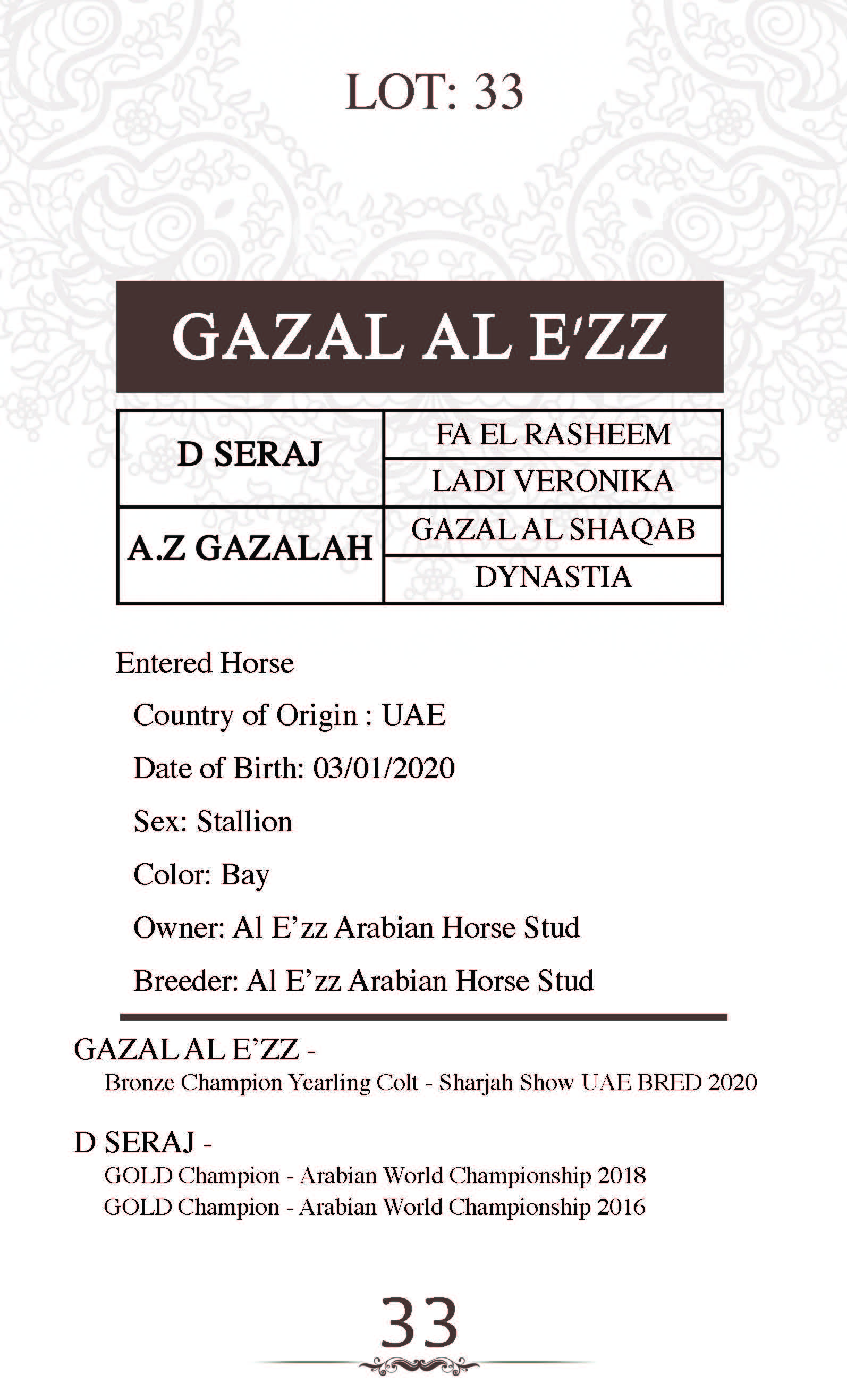 Dam's sire: GAZAL AL SHAQAB