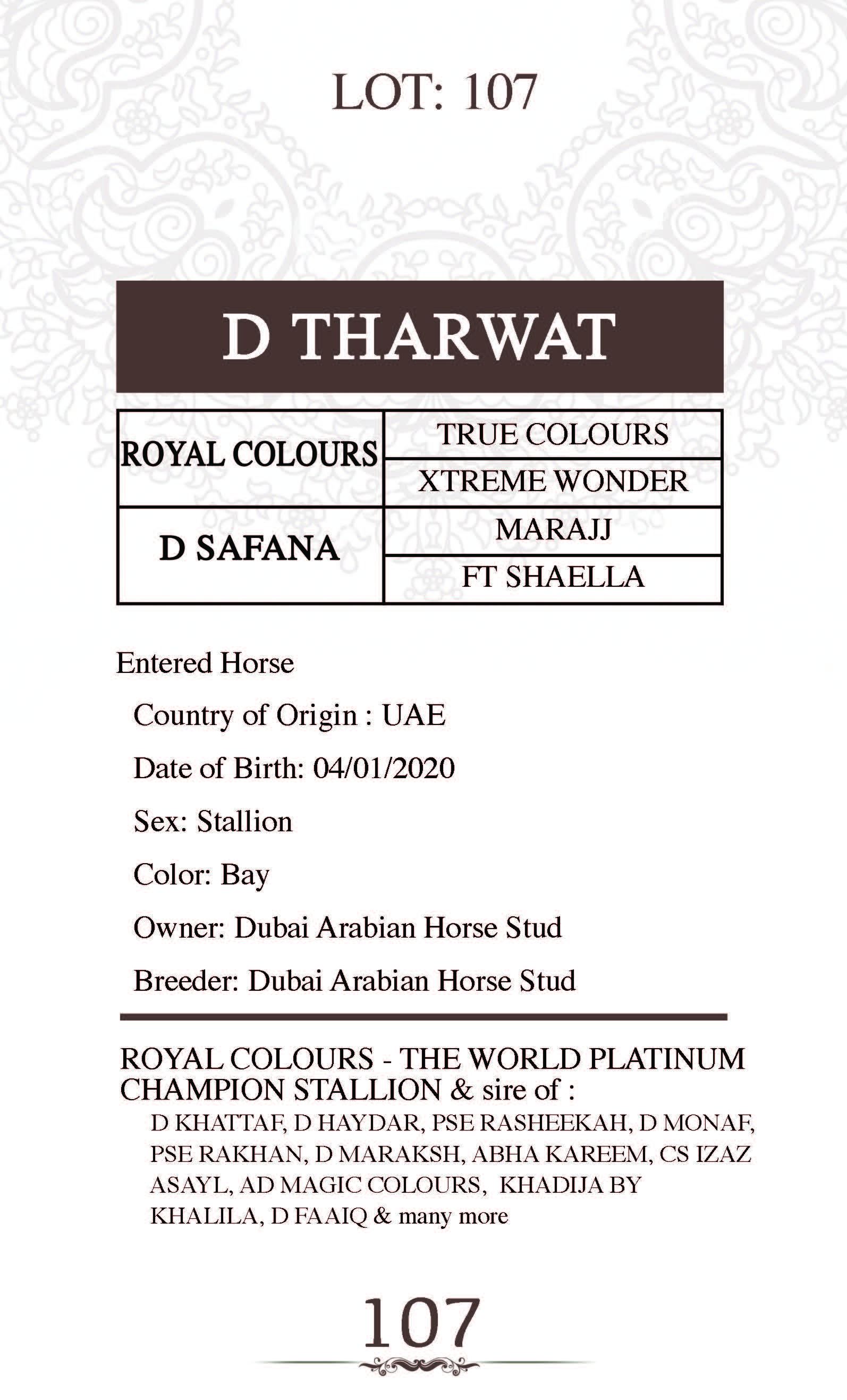 Sire: ROYAL COLOURS